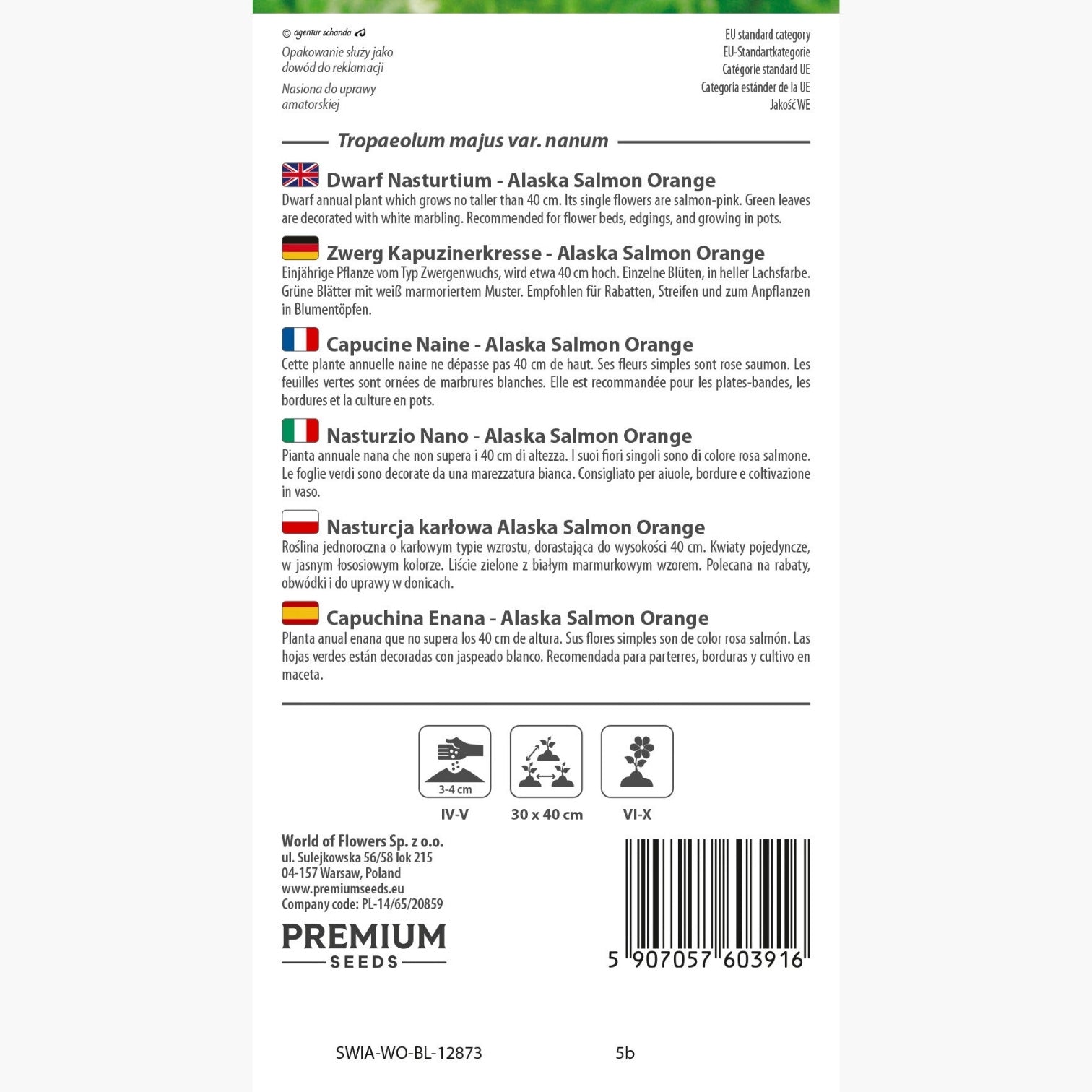 Capucine Naine - Alaska Salmon Orange - Croissance compacte, fleurs saumon - Tropaeolum majus var. nanum