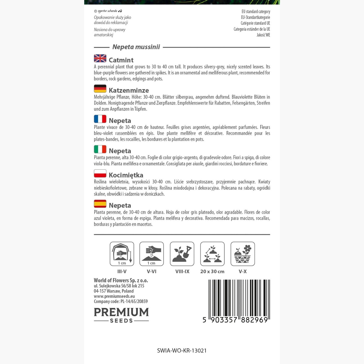Pour une floraison optimale, semez la Nepeta sous abri entre mars et mai, ou directement en pleine terre entre mai et juin, après avoir préparé le sol avec soin. Repiquez les plants entre août et septembre, en les espaçant de 20 x 30 cm pour assurer une bonne circulation de l'air et un ensoleillement suffisant.