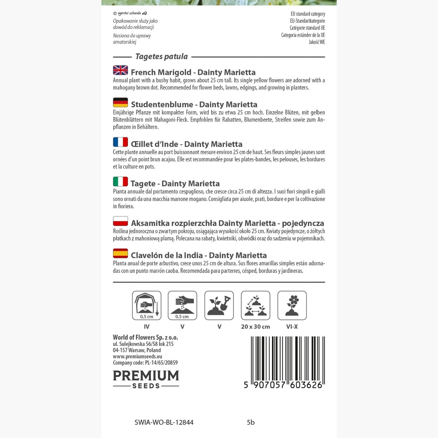 Beim Öffnen der Packung fiel mir das feine Saatgut auf, ordentlich und sauber verpackt. Nach der Aussaat im lockeren Substrat zeigten sich kräftige Keimlinge mit leuchtendem Gelb und warmem Orange. Die Blumen bringen Farbe in Beete und Kästen, wirken freundlich und dicht verzweigt. Lieferung von PremiumSeeds war zuverlässig, ich würde hier wieder bestellen.