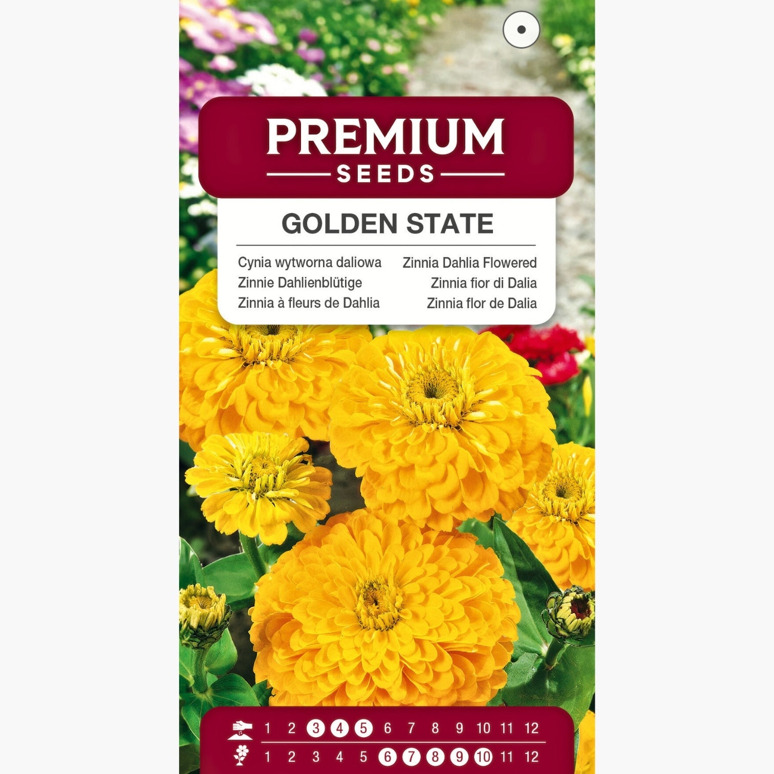 Zinnia à fleurs de Dahlia - Golden State - Fleurs doubles de couleur dorée - Zinnia elegans