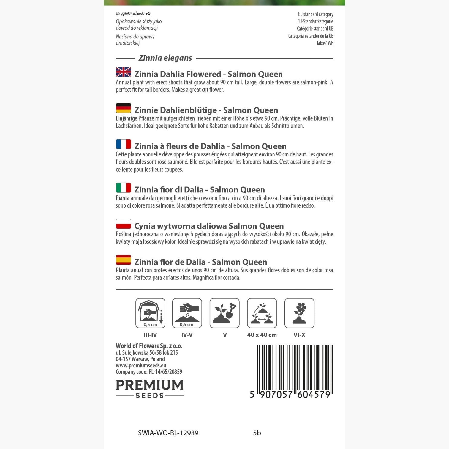 Dédiée aux amateurs de jardins colorés comme aux passionnés d’art floral, la variété 'Salmon Queen' transforme chaque espace, du plus champêtre au plus structuré, en une scène estivale lumineuse. Par sa croissance vigoureuse et son exceptionnelle longévité florale, ce zinnia enrichira sans effort la palette du jardinier, alliant faste ornemental et simplicité d’entretien.