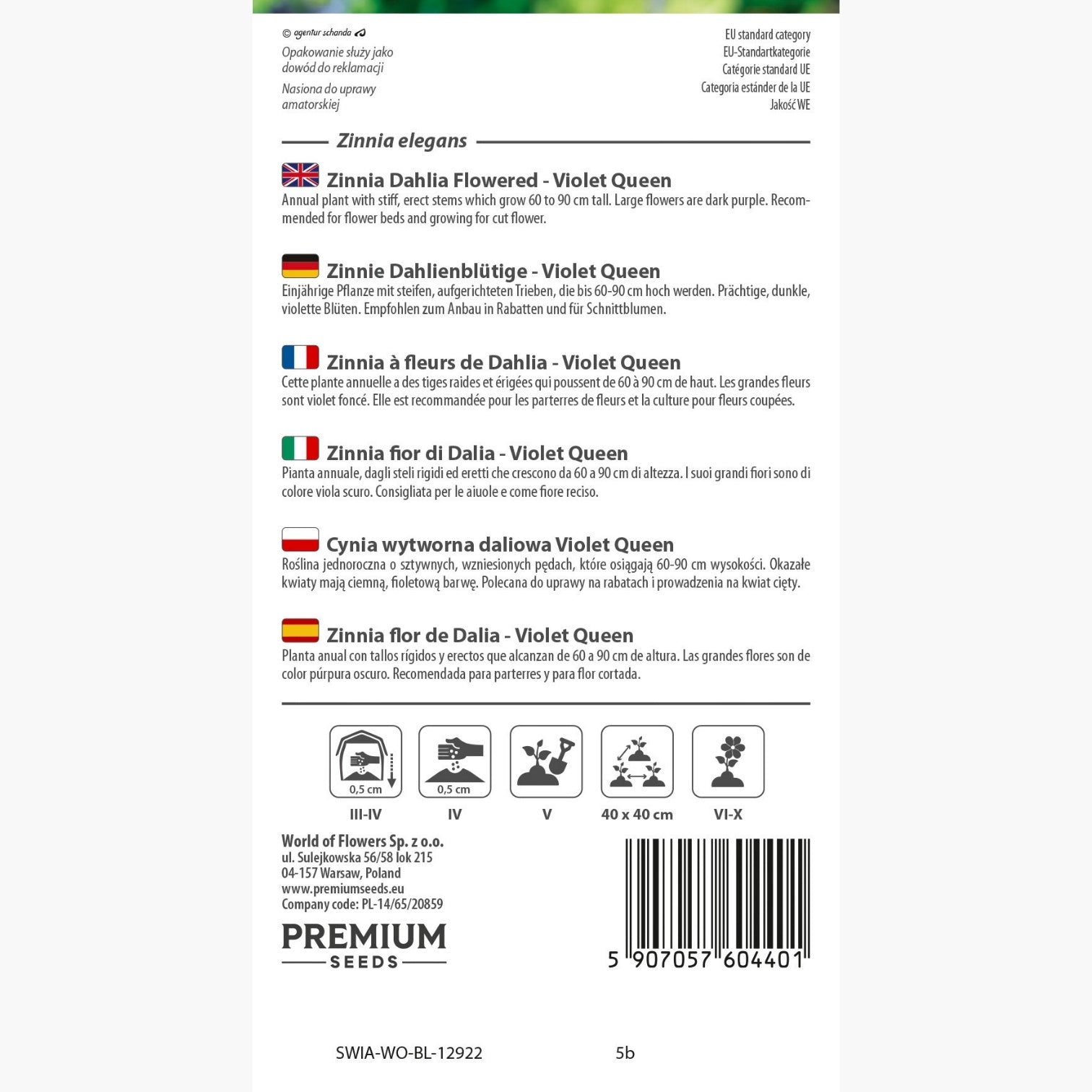 Zinnia à fleurs de Dahlia - Violet Queen - Violet royal à la couleur intense - Zinnia elegans