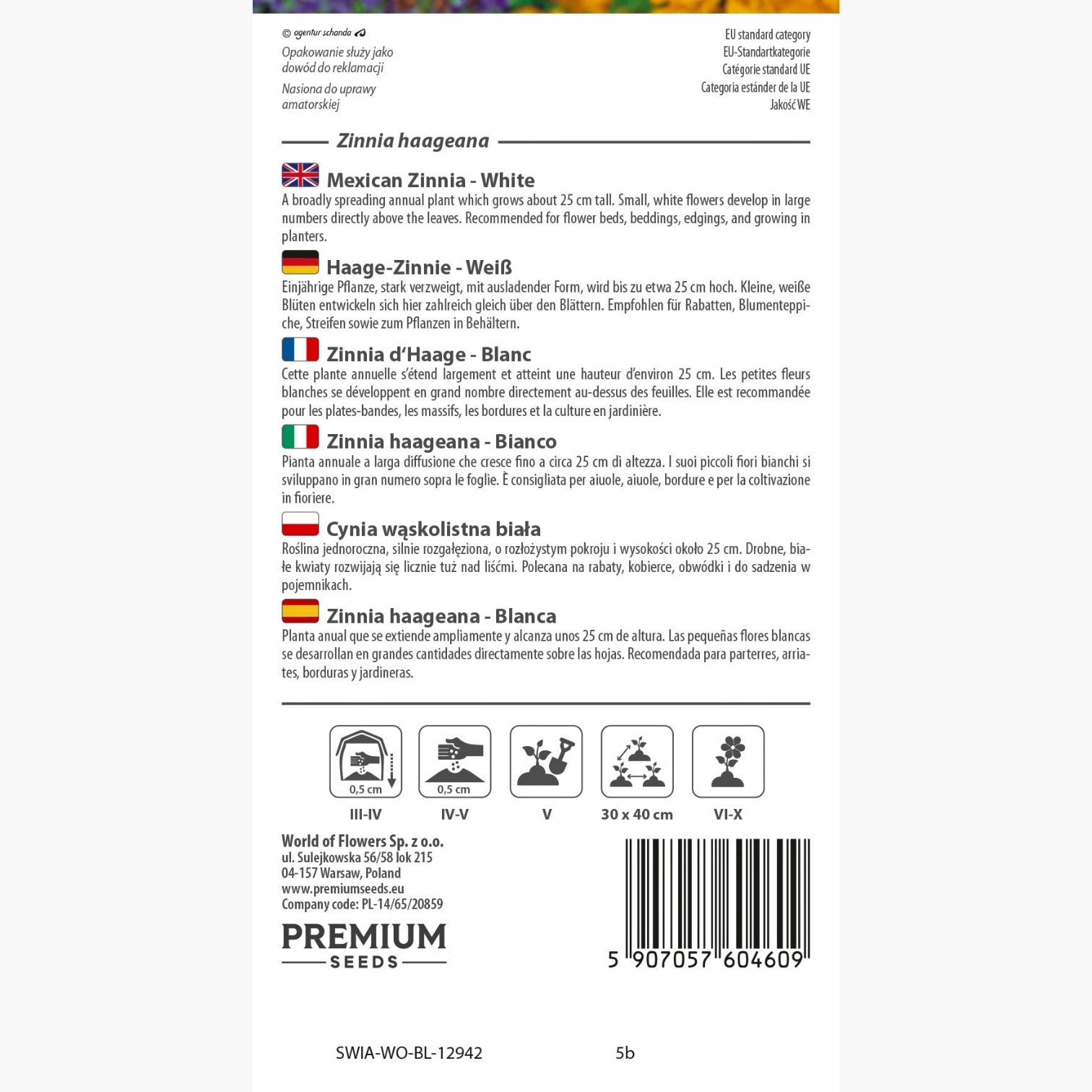 Zinnia d'Haage - Blanc - Blanc pur floraison délicate - Zinnia angustifolia