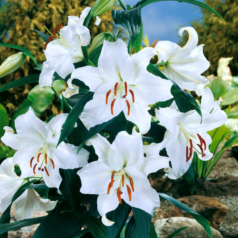 Le lys oriental Casa Blanca se distingue par sa blancheur éclatante et son port majestueux, conférant une ambiance raffinée à tout espace extérieur. Cette variété est appréciée pour sa capacité à instaurer une atmosphère élégante et lumineuse au sein des massifs ou en arrière-plan de compositions florales. Sa silhouette élancée et la pureté de ses fleurs en font un choix privilégié pour ceux qui recherchent une touche d’exception dans leur jardin ou sur leur terrasse.