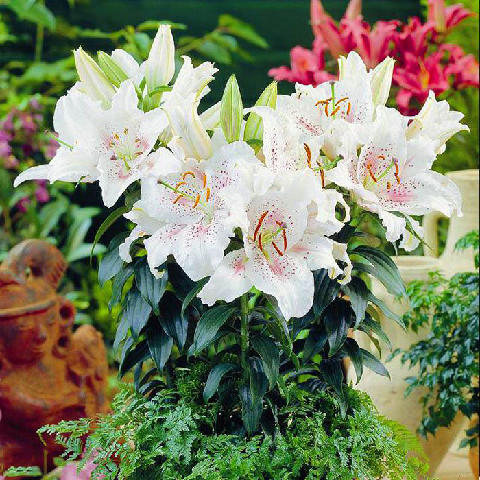 Lys oriental nain - Muscadet - Lilium - Fleurs blanches aux touches délicates de rose