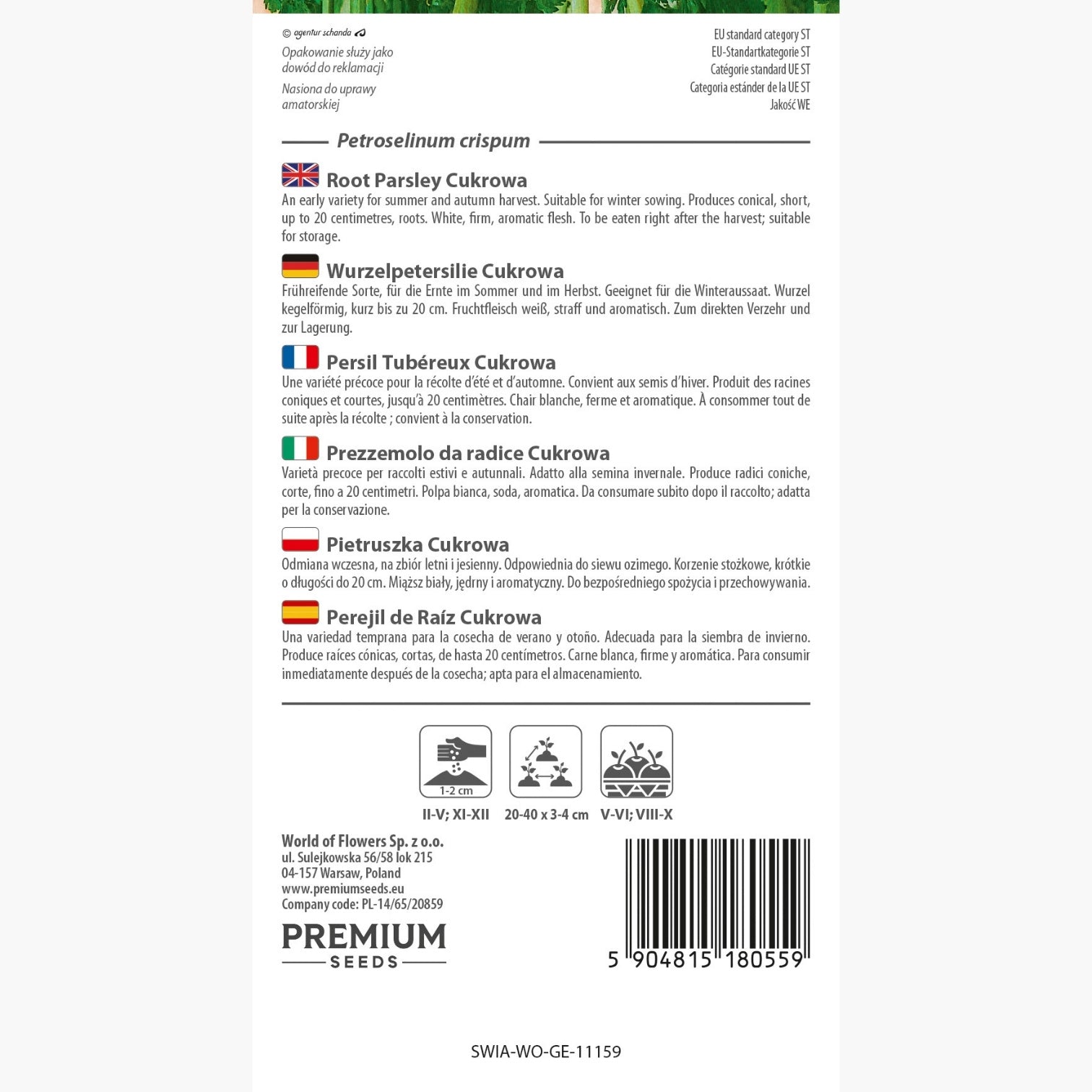 Le persil tubéreux Cukrowa se distingue par sa capacité à être consommé immédiatement après la récolte ou à être conservé sans perdre ses qualités nutritives et aromatiques. Sa chair blanche et ferme en fait un ingrédient idéal pour diverses préparations culinaires, apportant une touche de fraîcheur et d'originalité à vos plats.
