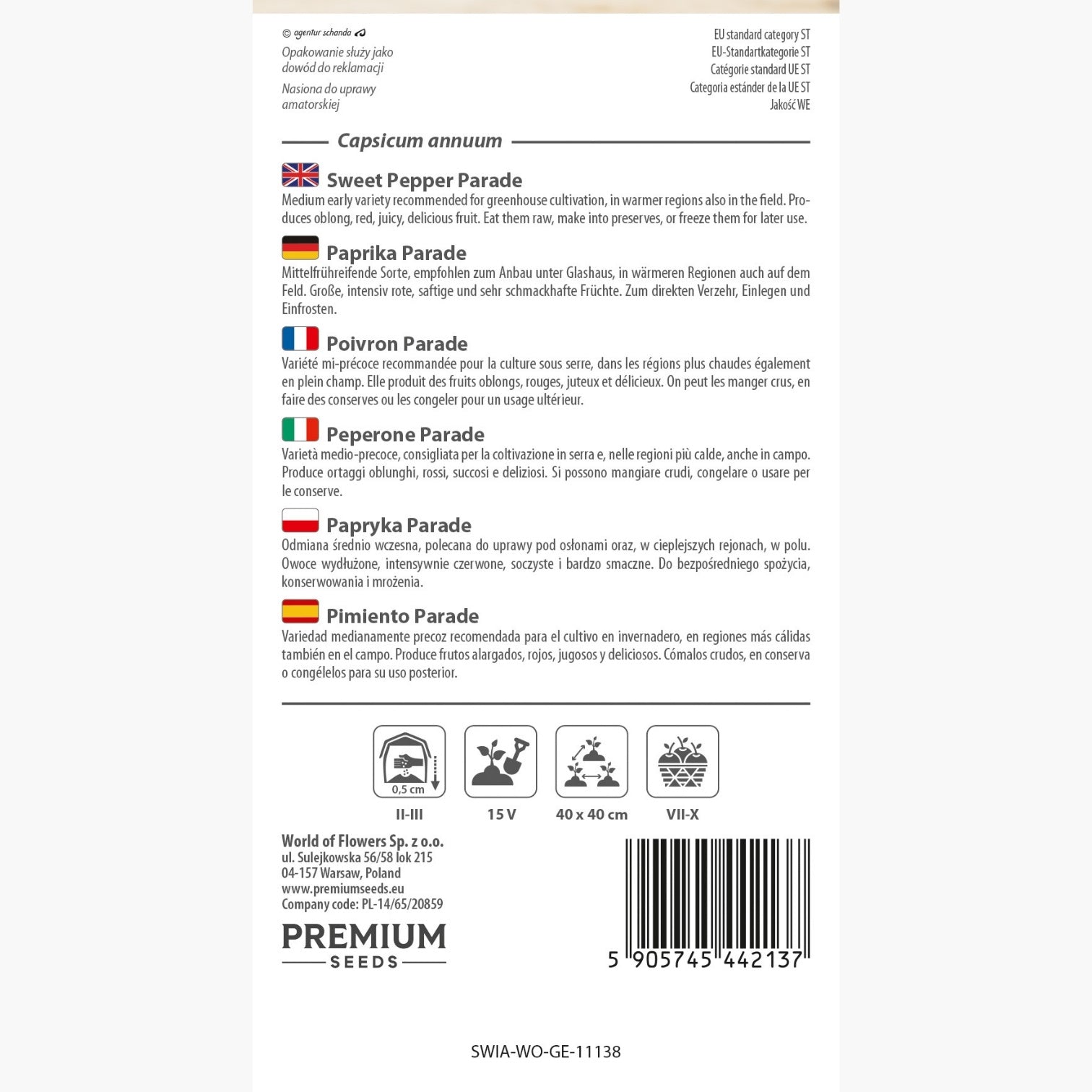 Poivron Parade - Douce et savoureuse, pour culture en serre, tunnel et plein champ