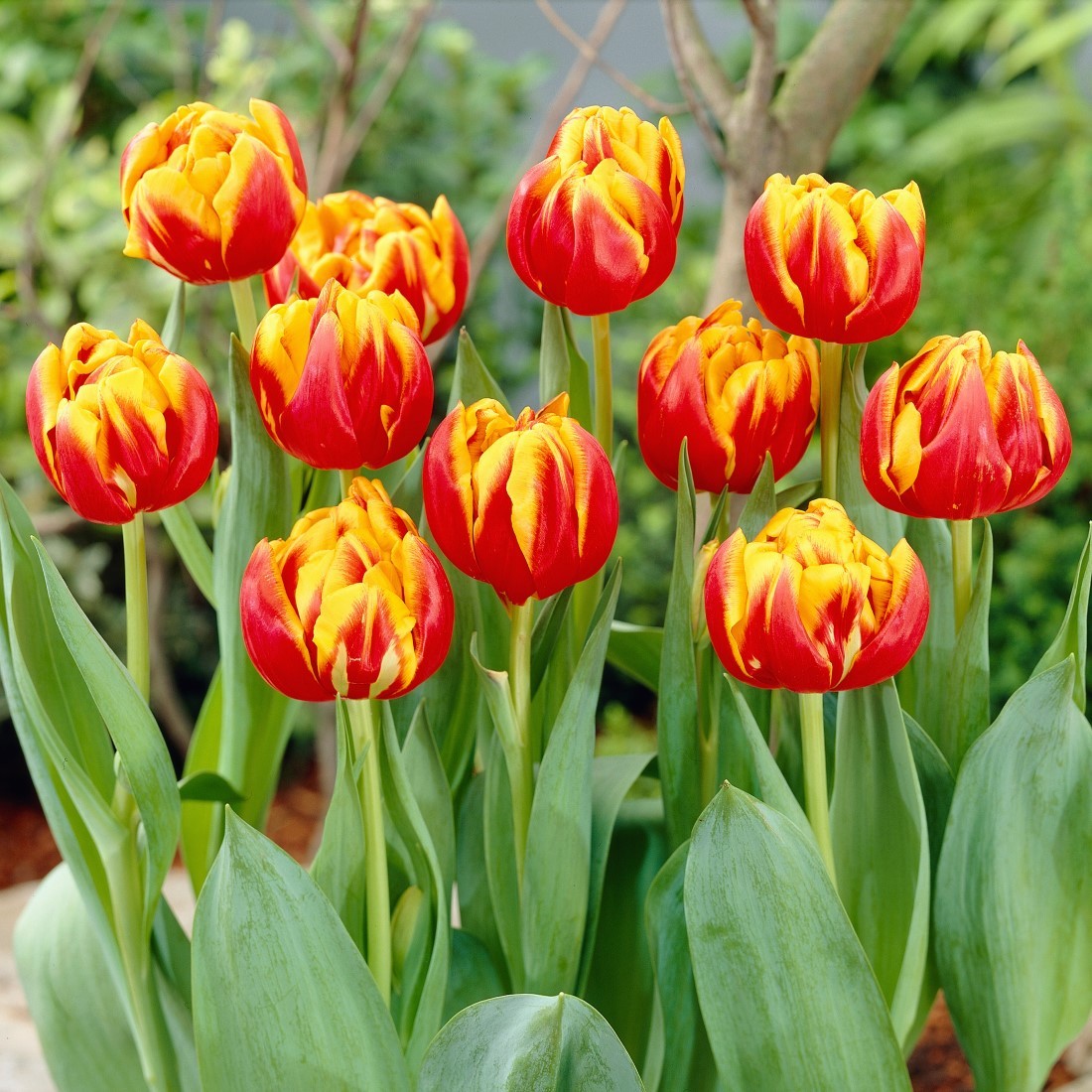 Cette tulipe se distingue par ses fleurs aux teintes intenses, combinant des nuances lumineuses qui attirent naturellement le regard dès le début du printemps. Les pétales présentent une texture veloutée et une silhouette élancée, tandis que le port général de la plante reste droit et élégant. Le feuillage, d’un vert soutenu, accompagne harmonieusement la floraison sans alourdir l’ensemble, créant un contraste agréable et mettant en valeur la forme régulière de chaque tige.